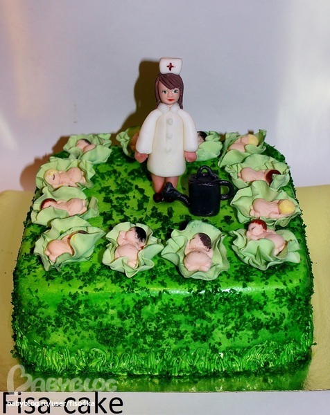 Видела когда-то торт, а на нем рука и в ней малыш. Было еще какое-то украшение, но основным было рука и малыш. И делался он тоже, если не ошибаюсь, врачу в роддом.