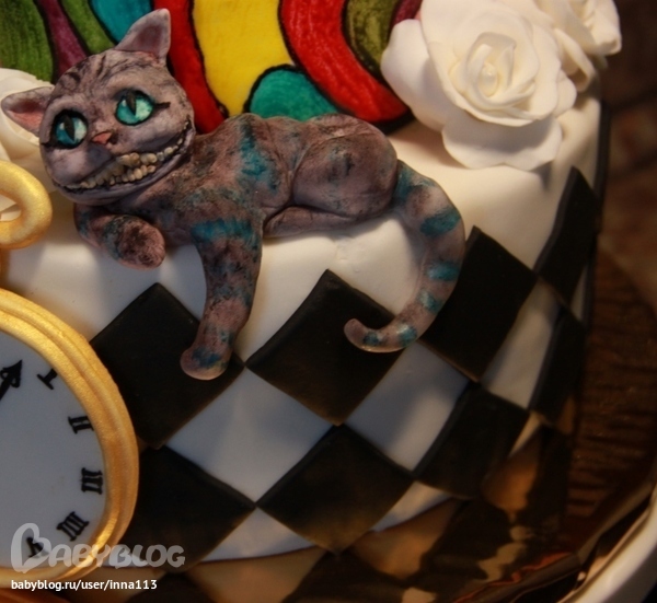 Как же красиво, Инн!!! Супер. Прям каждую делальку хочется назвать, обговорить, отметить!!! Что чашечка с тарелочкой с этими капельками по краюшкам, что Алиса такая хорошенькая, платье так развивается, как будто ветерок, котяра отпадный)) Правда, у тебя более худоват, чем в мульте))) А рисунок на втором ярусе так и приковывает взгляд!!! Восторг!!!!