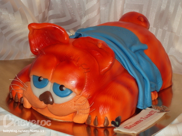 Торты 3ДВторой мой Гарфилд, В этот раз пробовала окрасить его аэром, только учусь пока с ним обращаться (не так это просто как многие новички думают, иногда думаю что не плохо бы и на курсы сходить). В общем не скажу что я им довольна- какой-то он слишком оранжевый чтоль. Но я и не бываю никогда довольна свими тортами - перфекционизм - моё второе я((((