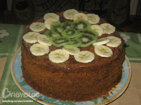 )Но получился очень вкусным!))коржи медовые, выпекала в мультиварке, крем сметанный, но мне он как-то не особо понравился, я люблю сладкий, а этот чуть с кислинкой.
