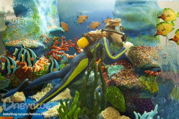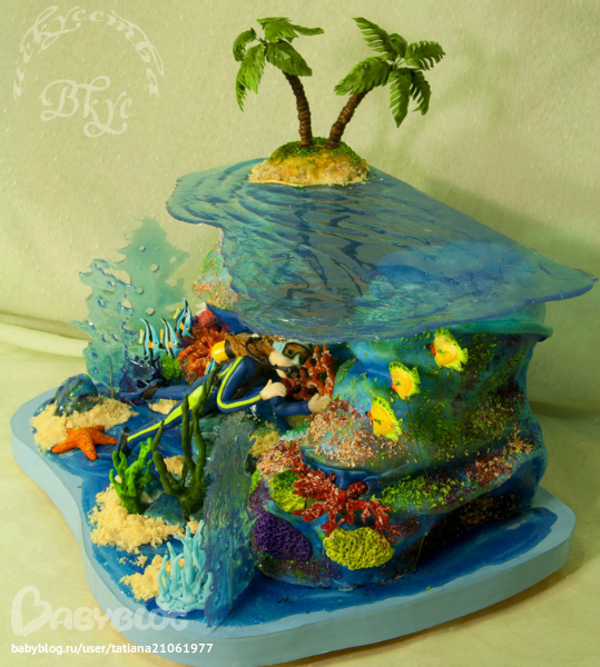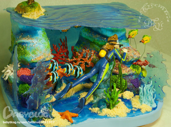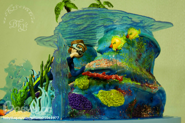 Торты тематическиеЭтот тортик для девочки, которая очень серьёзно увлекается подводным дайвингом. И вообще, она умница, красавица, мамина и папина гордость!)))