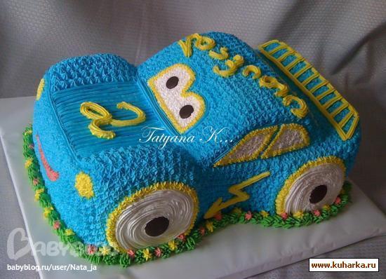 Как сделать машинку из крема не знаю, купите мастики кусочек и слепите, вместе с детками сядьте и украсьте тортик. Совместное творчество по украшению торта им понравится)