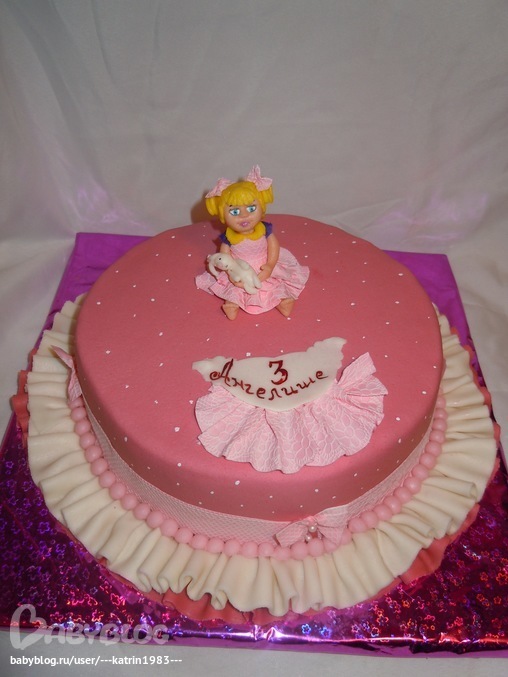 Торты детскиеМаковый бисквит, сливочно творожный крем , черника , клубника. Вес 2500.Мечтала я сделать девчачий тортик, мечта сбылась , а вот со временем облом... Заказали мне его в обед вчера, но вот делать пришлось только после 20 часов, зато до 9 утра. Куклу очень долго делала.