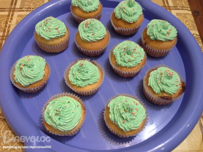 Сейчас, пожалуйста ))))) 100гр сл.масла взбисть со 150гр сахара, добавить 2 яйца ванилин взбить, 200гр муки и 1ч.л разрыхлителя,просеять, замешать тесто,добавить молоко 120гр перемешать, выпекать 25 мин, у меня получилось 17шт с этого теста, крем белково-масляный. Воть ))))