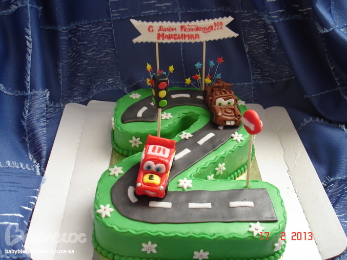 Вчера делала двойку, пищевым фломастером нарисовала на корже, потом вырезала, формат делала А4, вес 2 кг.