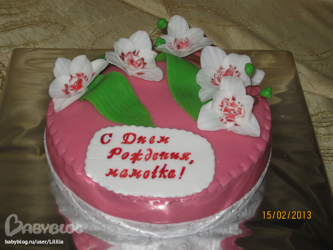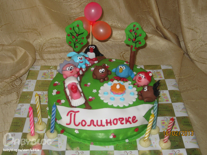 Торты для женщинРаботы сестры. Внутри орхидей - белый бисквит, творожно-сливочный крем, вишня. Вес 2 кг. В смешариких - белый бисквит, творожный крем, ананас. Вес 2,800.