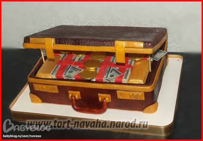история: заказчица дарит его своему мужу, который сказал, что согласится на второго ребенка только когда у него будет чемодан денег. Я надеюсь, что этот торт даст толчок новой жизни