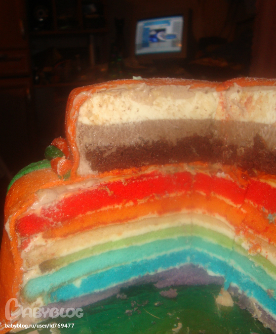 сыну на день рождения. снизу радуга с йогуртом и маскарпоне, сверху- два шоколада