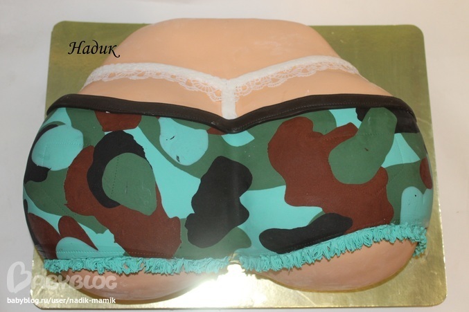 т.к. в прошлом году торт был гвоздем праздника и все ждали с нетерпением когда же до него дойдет очередь. В этом году вот такая ПОПКА в камуфляже...