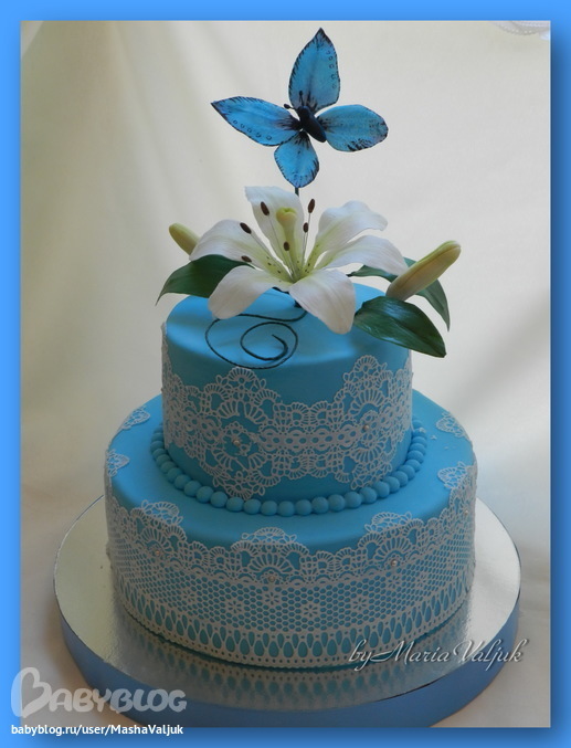 Моя постоянная заказчица заказала вот такой торт для своей свекрови, которая любит лилии и бабочек)