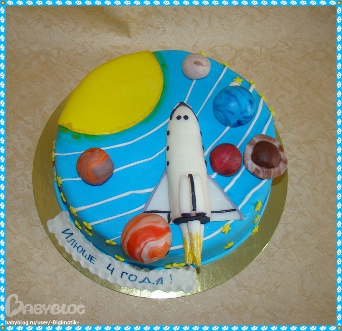 урра! Юленьку знаю ;)) рада, что Илюньке достался такой шикарный тортик!!!! от моей любимой Натульки ;))) Натуль, здоровский тортик!!!! шатл красивущий!