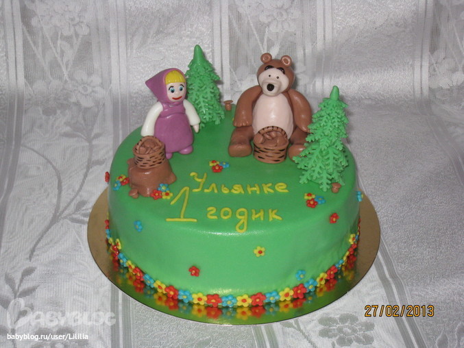 Торты детскиеМоя работа. Что-то не слишком весело мне было делать этих Машу и Медведя. Дитюшка моя заболела сильно, температура была 2 дня высокая, а теперь все кашляет, кашляет, никак не пройдет!!!(( Словом, настроения никакого. Мишка мне больше нравится, чем Маша)) Да и елки какие-то вялые получились))) Внутри шок. бисквит, сметанно-сливочный крем, ананасы, манго. Вес 2,500.
