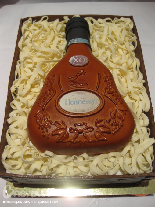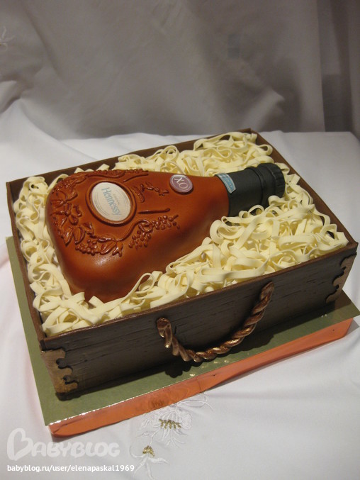 Торты для мужчинВес-3кг.Шокошифон.В бутылке шоколадный ганаш,в коробке сырно-сливочный крем.Пропитан коньячком.
