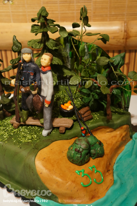 Торты юбилейныеВторой тортик за вечер. Вес 3,8 кг, внутри тирамису и маскарпоневый крем с кофе и грецкими орешками. У мамы с папой этих братишек юбилей - 33 года совместной жизни, клубничная свадьба, вот дети и решили их порадовать :) Портретная лепка.