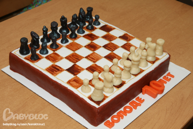Торты детскиеВот и сделала я наконец ещё одну шахматную доску. Фигурки делала из марципана, они не хотели вытаскиваться из формочки. В общем, намучалась. Внутри Наполеон по рецепту нашей ббешечки Лены. Вес 5100.