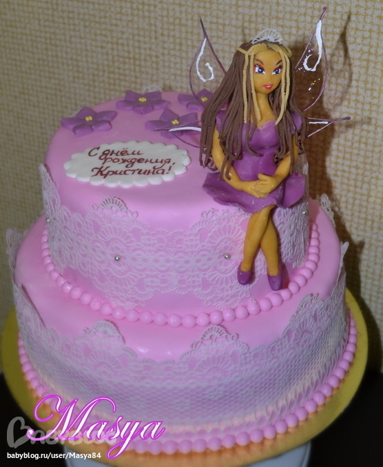 Оченькрасивый тортик,и цвет, кружева, и винкс,мне на вторник тоже винкс делать. сегодня буду приступать, боюсь я её......