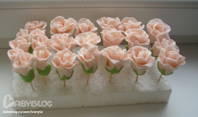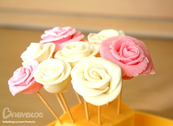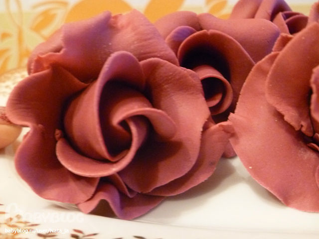 что бы розы получились красивыми,мармышковую мастику нужно хорошенько вымесить,она будет тоньше раскатываться если ты в сахарную пудру добавишь СМС,тогда мастика становится эластичнее,если пока нет возможности купить готовую мастику,то для лепки роз используй желатиновую,она и подешевле обходится.Сейчас я для цветов желатиновую делаю...если найду фотки то поставлю для сравнения