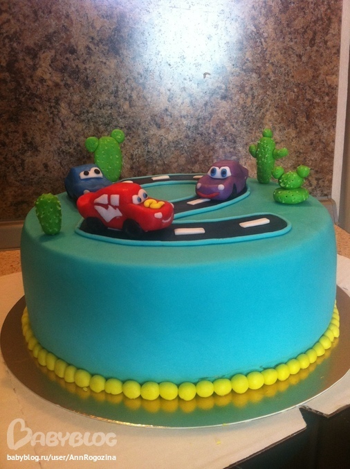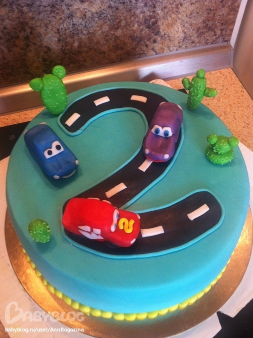 Торт на 2 годика маленькому Мксимке, обожающему машинки.