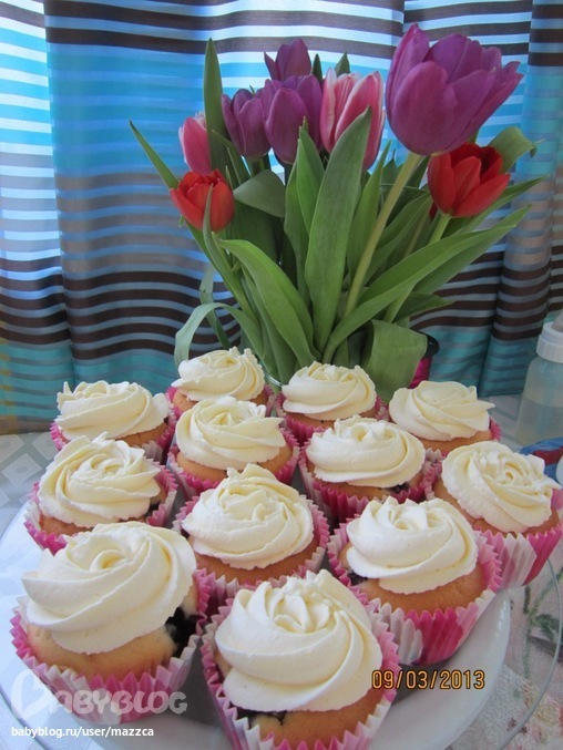 Капкейки и КейкпопсыКапкейки с голубикой. Шапочка из моего любимого сметанного крема)) Вкуснота и красота!!! Улетели в один момент..