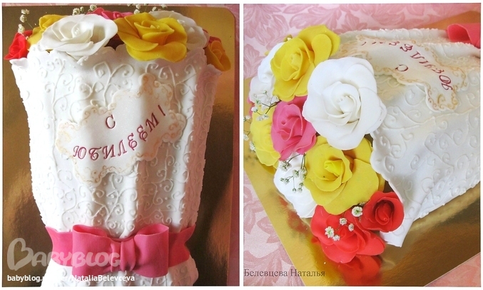 Спасибо) нижний корж вырезала произвольно по форме букета, сверху выкладывала горкой порезанный бисквит (это же "панчо"), формируя букет. под мастику делаю масло + сгущенка + перемолотое печенье