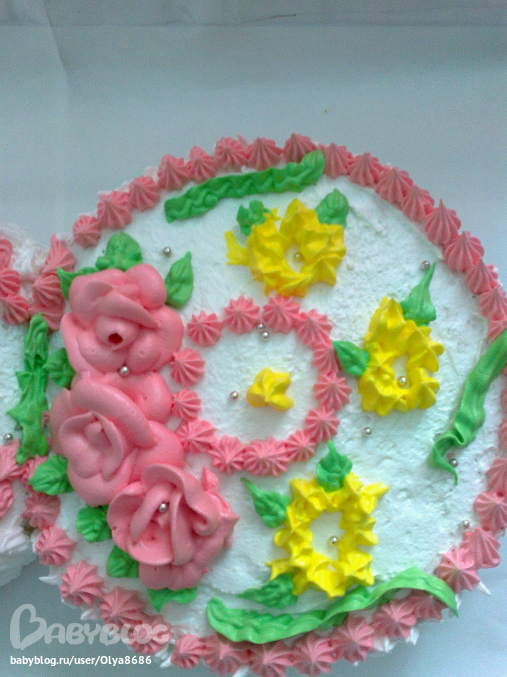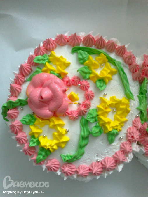 девочки покритикуйте. я понимаю что этот торт ужасен. может кто подкинет какие нибудь идейки на будующее буду очень признательна. да кстате украшали вместе с сыном)))