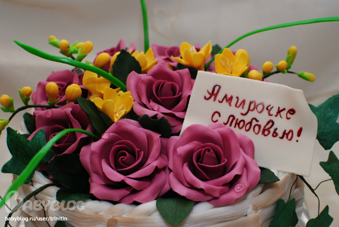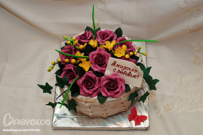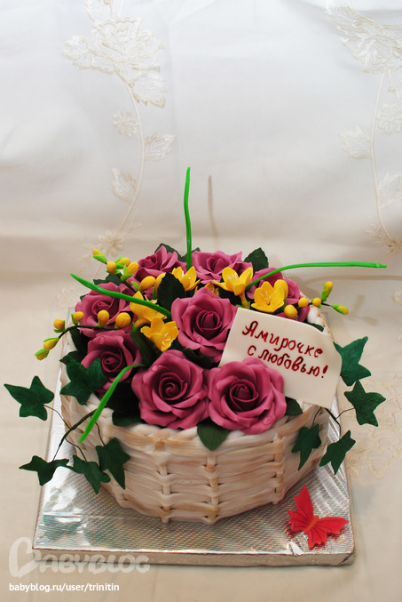 Торты 3ДМоя первая корзинка именно с цветами, а то все с фруктами)) Тортик в подарок на празднование 2-х лет маленькой девочке. Розы и фрезии