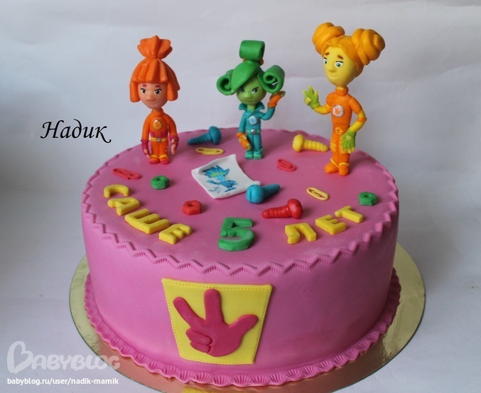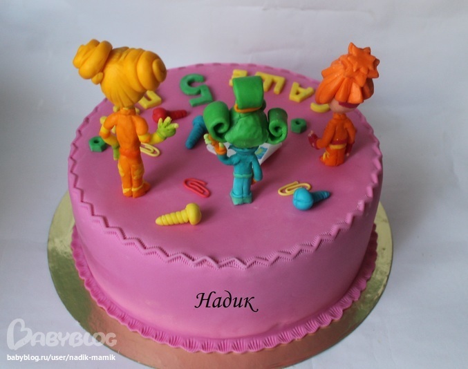 Торты детскиеТорт с новыми фиксиками. Знакомтесь теперь у фиксиков есть подружки, одну зовут Шпунька (желтая), другую Ветта (зеленая) , на портрете изображен самый крутой фиксик -Вектор, ну и Симка тоже туточки. (кто хочет посмотреть смотрите 57 серию- Вентиляция)
