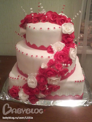 Торты свадебныеРабота сестры. Правда, коржи и крем делала мама невесты, они попросили украсить их тортик. Если бы не были хорошими знакомыми, сестра не стала бы связываться. Вес больше 15 кг.