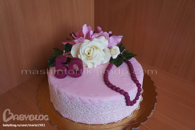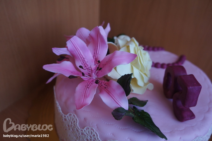 Машенька, торт был оооочень вкусным!! Мама осталась очень довольна! Бусы и цифры кроме Андрюши никто попробовать не успел:)))) поо кружева как догадалась? Безумно красиво...