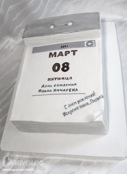 Людмила СК в Кондитерская 13 лет Торт календарь Торты 3Д Вес 4 кг. Внутри "Пьяная вишня". Забавно смотрится в Ретро-варианте:-) Посмотрите еще 20 записей на эту тему Отменить Ответить Юлия Здорово вышло)))) ты решила не вырезать буковки, а писать? млин что одно что другое - мучение!!!вообщем поздравляю))) 11.03.2013 Ответить Natalia Замечательный торт! 11.03.2013 Ответить Людмила СК 11.03.2013 Ответить ryazanka Очень интересный! 11.03.2013 Ответить Людмила СК Спасибо! 11.03.2013 Ответить мяч.. мешочек Чаты Беременных Выберите чат: Январята-2026 Февралята-2026 Мартята-2026 Апрелята-2026 Майчата-2026 Июнята-2026 Июлята-2026 Августята-2026