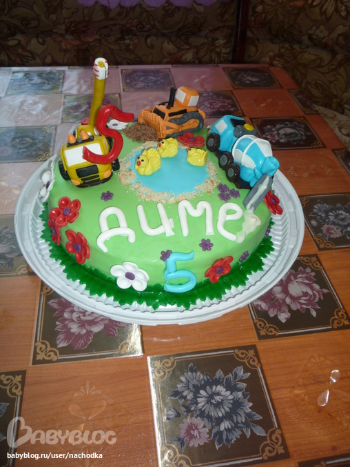 Торты детскиеНавеялось такое название, т.к. кажая спецтехника учасвтвует в сладкой стройке.! бетономешалка сливает белый шоколад, экскаватор сгребает молочный шоколад, ну а крану как и велено поднимаецт цифру ! все при делах!