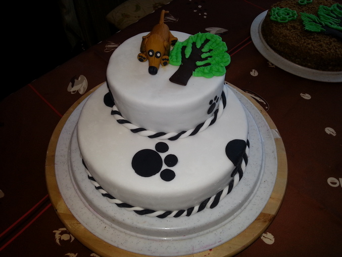 очень не плохо. жаль, что дерево лежит и у собачки глаза не проработаны, но сам тортик очень удачно выровнен и украшен. поздравляю с почином!!!