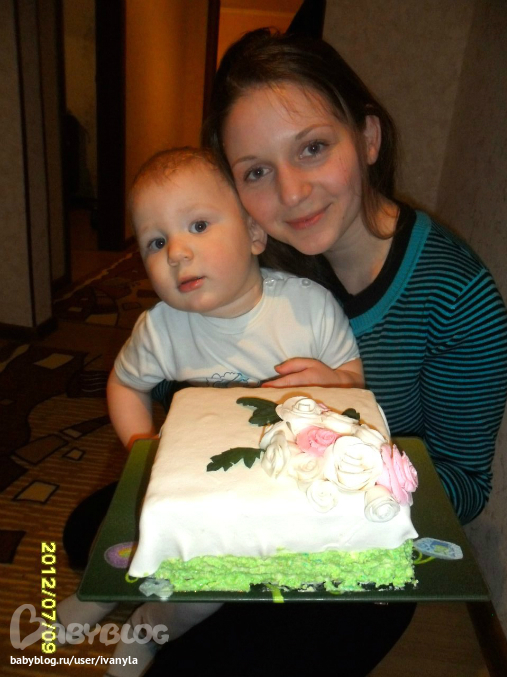 а сынуля какой довольный))) Хороший тортик для первого, еще выровнять хорошенько и все отлично будет.