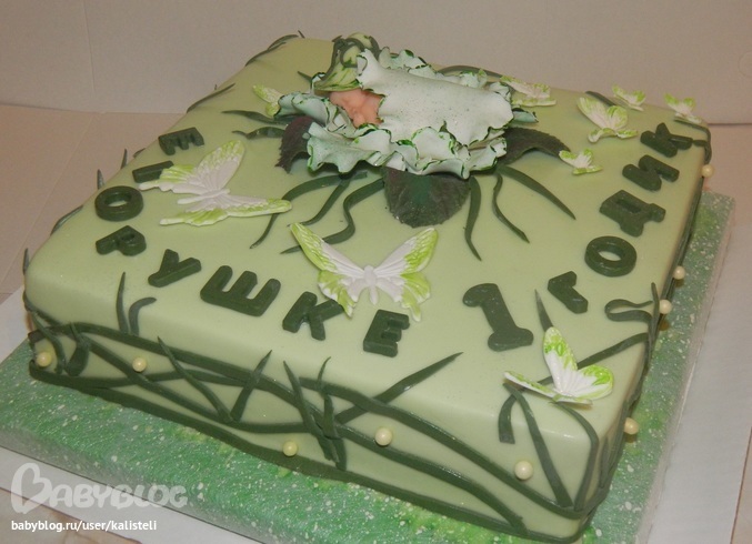 Торты детскиеНа годик сынули для нашей ББшечки , по оформлению заказчица дала мне волю, на мое усмотрение..кедики уже приелись...долго думала что б такое сделать..фантазии конеш у меня малова то...ну вот сбствена что вышло)))