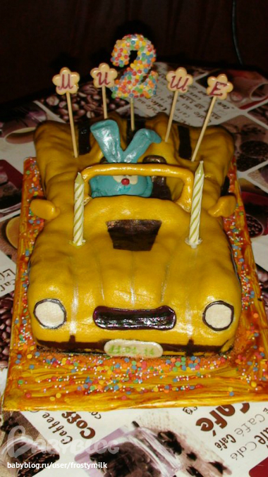 Галина,да,многострадальная первая машина.в наличии было лишь 2 цвета красок(желтая и черная).Торт делала на ДР сына лучшей подруги.Да,я его выравнивала,но в итоге мой сын своими нападками мне испортил его немного.Да и в конце он у меня еще и упал((((( Машина очень тяжелая,до достойного МК не нашла((( Лепила из своей головы,которая ничего не смыслит в автомобилях((( Но видимо безумное жлание и старание помогли мне добиться хоть какого-то нормального результата.