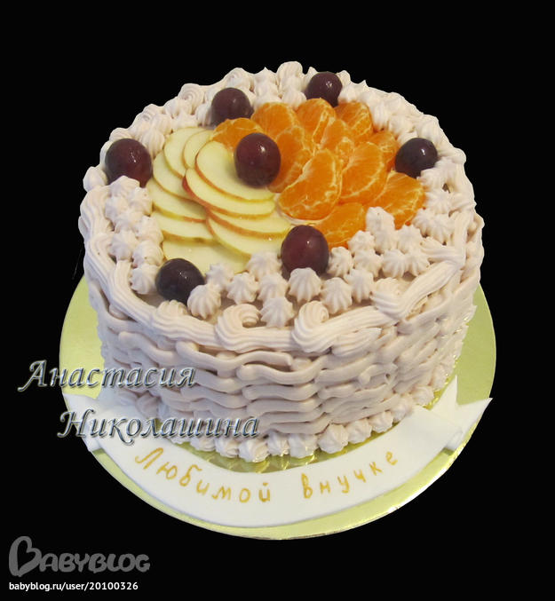 Украшение тортов кремом,шоколадом, фруктамиНу, вот, девочки, и мой первый заказной тортик:) Тортик не мастичный, а кремовый, такой захотела заказчица:)