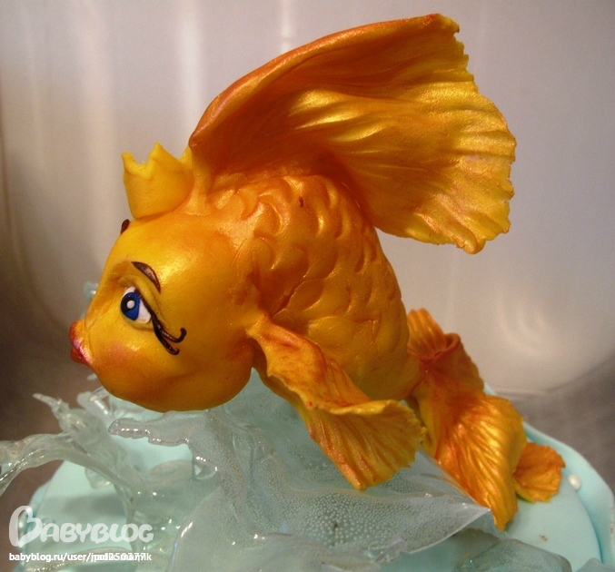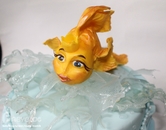 Здесь фото Юли и фото с моего аппарата! Много красивых слов я говорить не умею, поэтому заранее прошу прощения! Торт даехал почти в целости, немного рыбка убежала и плавник потерала, но я его на место поставила. Всех конечно поразила ВОЛНА, это что-то необычное и классное (сама видимо на такое не решусь или приеду за наглядным МК к Юле))) Сейчас рыбка стоит на подставочке, немного попортила волну, и надо ей коробочку соорудить, есть её я не дам никому, пока она не исполнит наши желания )))))))
