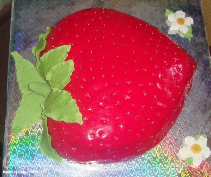 ну так клубничка же с зернышками, я вот еще не решила чем их буду делать, подсолнечными зернышками или из желтой мастики, думаю от размера торта будет зависеть