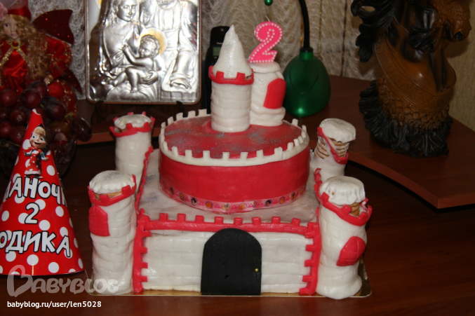 Тортики не плохие, думаю, что вашим гостям понравились, но все-таки наверно стоило хоть немного потренироваться заранее...Я не представляю, что у вас был за праздник, если вы совершенно не спали, измотались за ночь с таким трудным тортом,как замок..Даже я бы не взялась делать такой торт себе, не смотря на то что сделала уже не один десяток... Я могу только похвалить вас за смелость и упрямство! Возможно, это ваш плюс, и благодаря этому вы достигните все-таки лучших результатов!