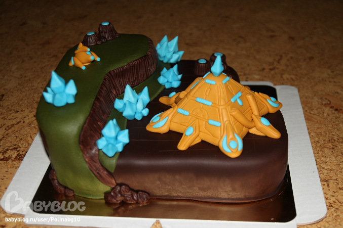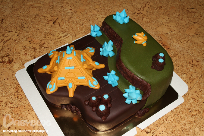 Торты детскиеТортик на тему игры Старкрафт. Мальчик сам выбирал какой торт ему хочется на ДР, даже нашел картинку тортика, так что идея не моя. Хотя его мама изначально просила паспорт :о) 3,5 кг птичьего молока. А обтягивала я его Дамой шоколадной, ооочень она мне понравилась и вкус и качество, ну и цвет...