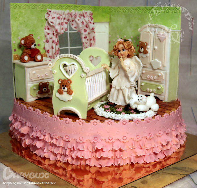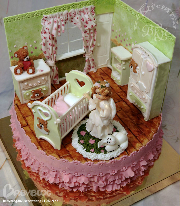 Торты детскиеТорт на рождение малышки. 9 кг.