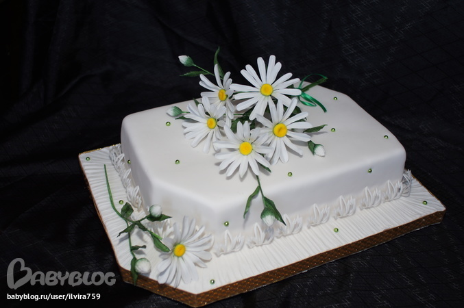Какие ромашечки!!! Торт просто заглядение что называется просто и со вкусом (о простом - это я о внешнем виде если что, а не о работе)))
