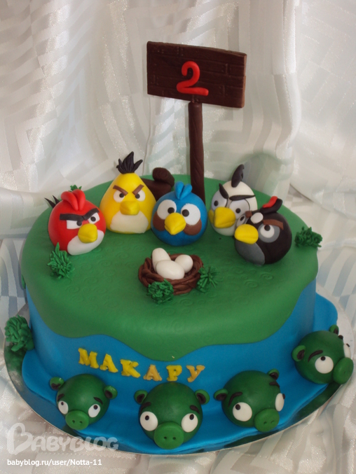 Торты детскиеДавно я смотрела на этих птичек, и вот пришла моя очередь! Дизайн полностью заказчицы- кто где стоит)))где табличка и где надпись. Еще она хотела и рогатку...но куда её примостить во первых, во вторых я и так увлеклась на столько что сделала перевес аж в целый килограмм. А учитывая начинку(киевский торт) можно сказать что трудилась я за любовь к искусству).