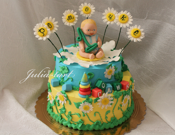 Украшение тортов кремом,шоколадом, фруктамиДля сыночка нашей ББ-шечки Ирины, очень позитивной и приятной в общении.. С Днем рождения, с первым годиком Ромочку!