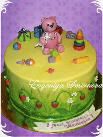 Женя, тортик замечательный! Очень здорово смотрятся землянички и мишка в бусиках! И состав вкусненький))