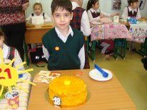 спасибо! они вначале не могли понять что это такое, а учитель не разрешала резать ,, как она говорит было жалко портить такую красоту.. а мой сынок переживал что у других едят блины а его красоту не трогают. а делала я этот тортик глядя на твой. как у тебя правда не получилось, твои блинчики такие нежные вышли