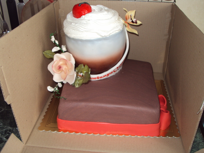 Торты тематическиеНу в общем вот что получилось - клиентка захотела коричневый низ и коричневый же коктейль...Хотя я и сказала что потеряется - ну что ж, так и оказалось. я уж и цветов побольше (она внизу просила маленький букетик) и ленту красную пониже- нет, не красиво и все тут. И вообще, я не знаю как вы девочки по 19 тортов делаете. Я осилила за сутки 2, страшно ими не довольна, у меня трясутся ноги и руки и вообще состояние физическое да и самооценка на нуле (скоро наверное в минус уйдет(((