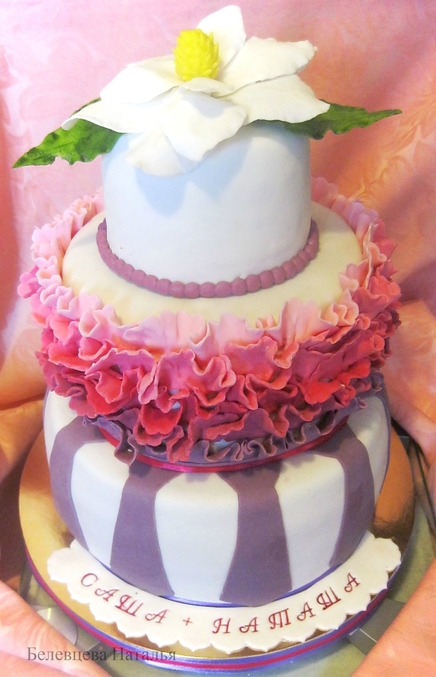 Спасибо, Ален! я на него и не ругалась, потому что он мне в общем идею торта и подсказал, первый ярус мужской с галстуками, второй - женский с оборками))) бо у меня в голове вообще пусто было)))