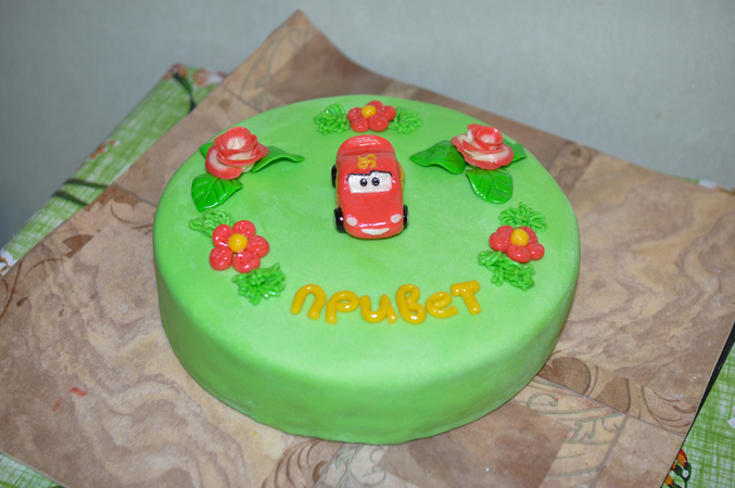, время уже было час ночи, украшательством не в моготу уже было заниматься. На будущее буду знать, что на большой диаметр тортика нужно больше фигурок.