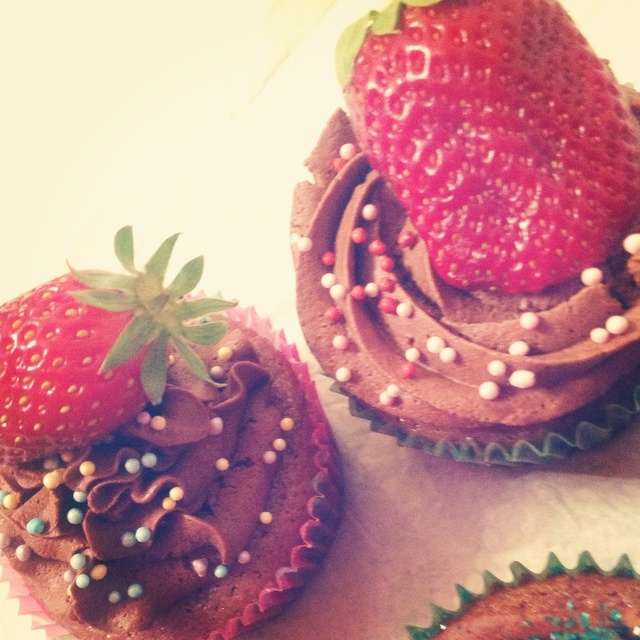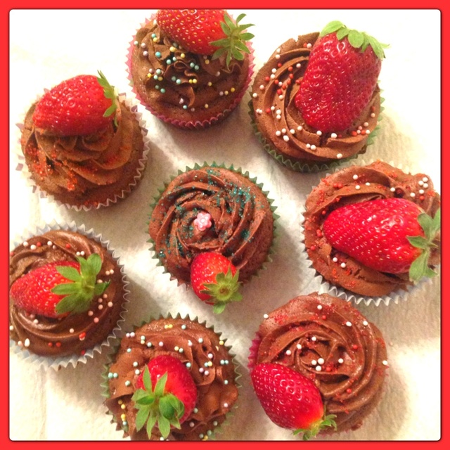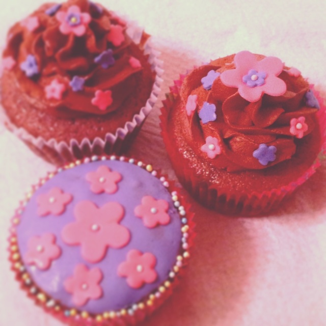 Капкейки и КейкпопсыИспекла для учительницы. Капкейки ванильные с добавлением пюре из черной смородины.